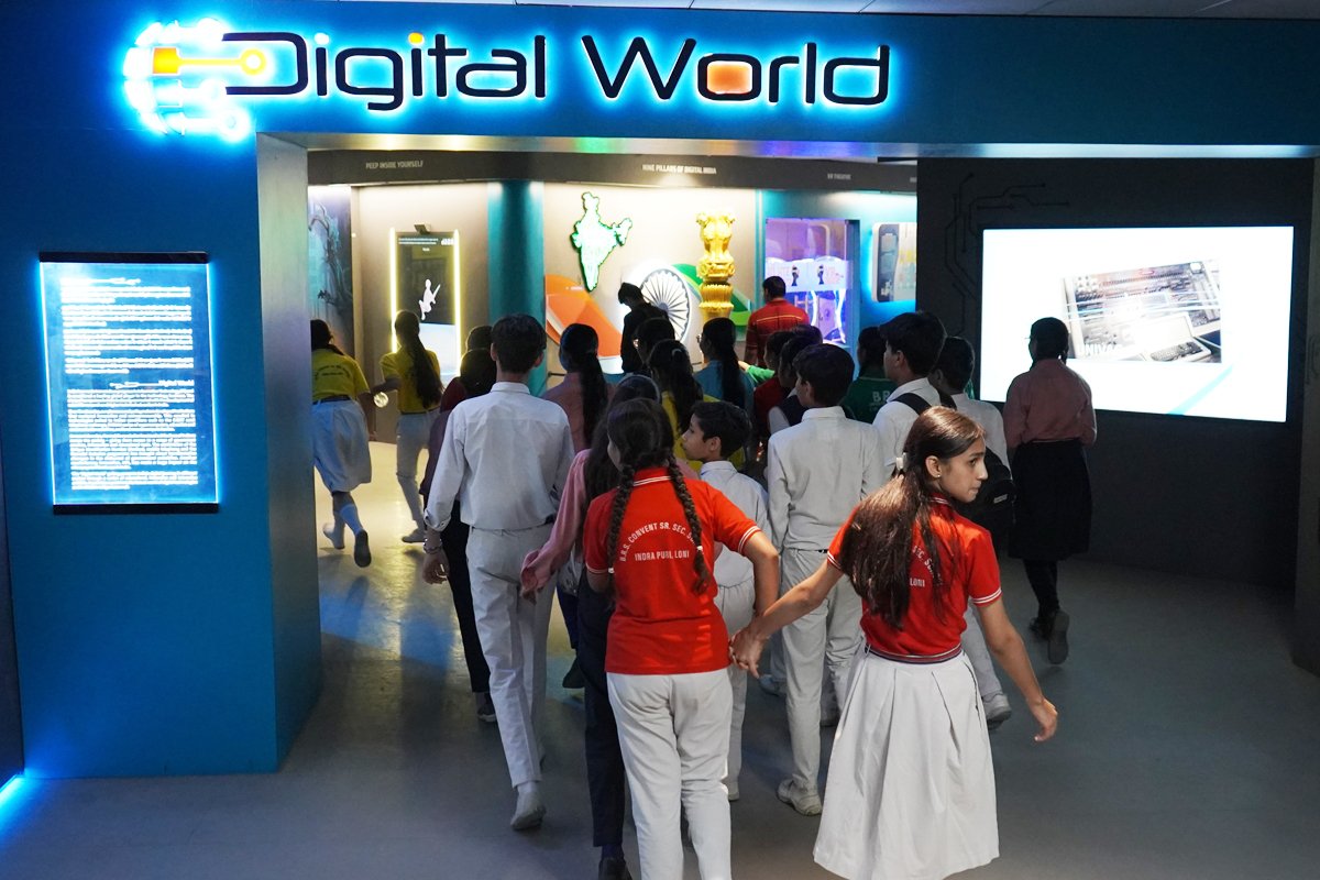“Digital World” features 32 interactive exhibits thoughtfully curated into seven thematic sections. The exhibition vividly showcases India’s digital journey, highlighting the nation’s remarkable achievements in Information Technology (IT) and its pioneering contributions to science and technology. The newly unveiled Digital World Gallery is organised into the following thematic sections: Introduction, Indian Challenges, Digital India, Digital Health & Wellbeing, Digital Commerce, Digital Entertainment, and Artificial Intelligence. Visitors embark on a captivating journey that begins with the evolution of computers, tracing their transformation from room -sized machines to today’s powerful pocket -sized devices. Key highlights include “C -DAC: An Indian Success Story,” which illustrates India’s emergence as a global leader in high - performance computing