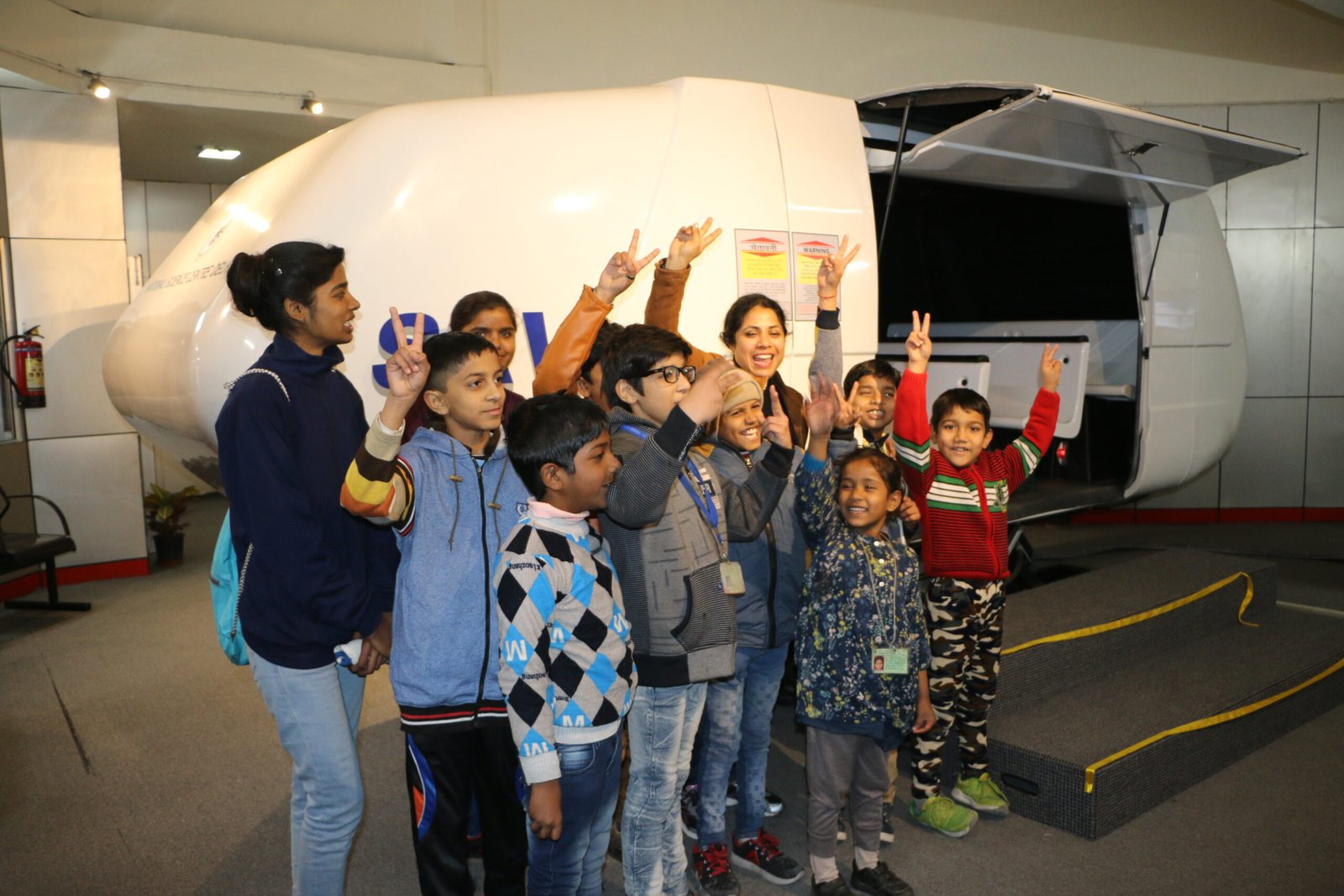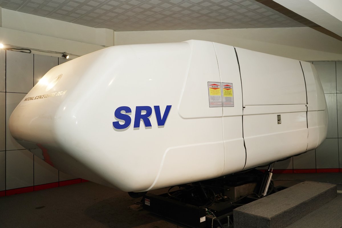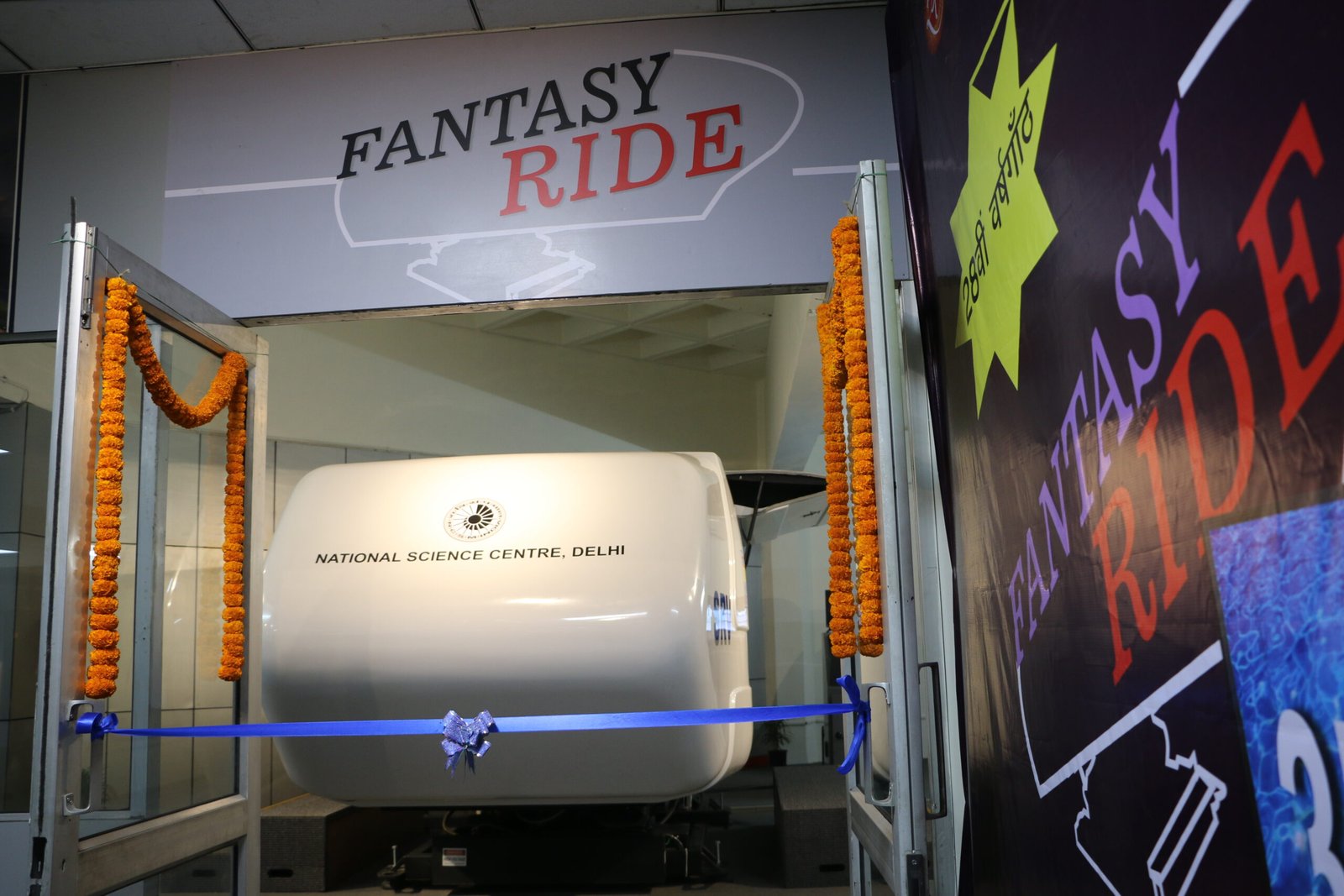 The motion simulator is a mechanism that creates the feelings of being in a real motion environment. In a simulator, the movement is synchronised with a visual display of the outside world (OTW) scene. This Motion simulator can provide movement in all of the six degrees of freedom (rotational and linear) that can be experienced by the visitor who is free to move, like an aircraft or spacecraft. These are the three rotational degrees of freedom (roll, pitch, yaw) and three translational or linear degrees of freedom (surge, heave, sway). The capacity of this facility is 14 seats.