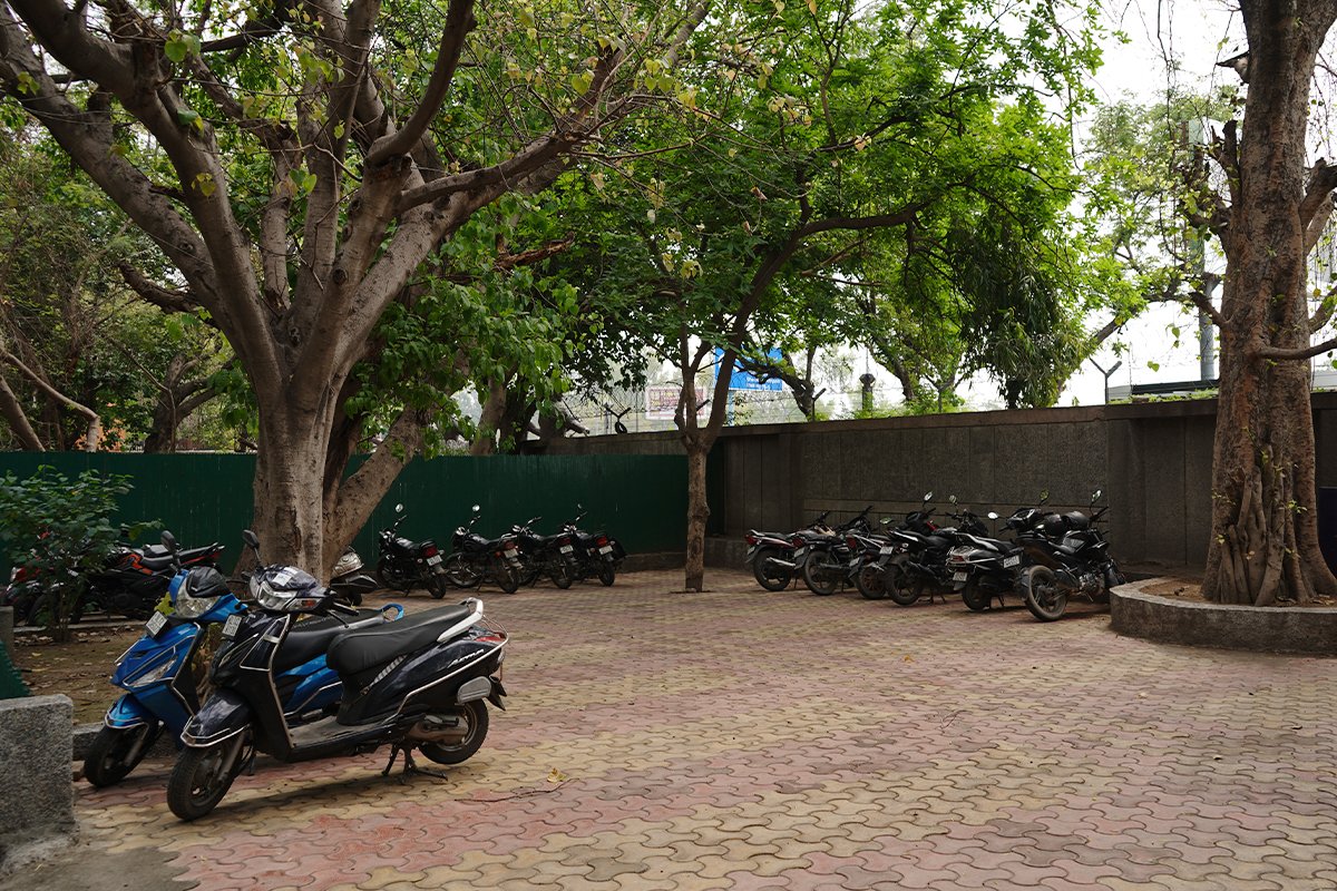 The Centre provides a safe parking facility during working hours for its visitors and for those attending programmes in the auditorium or conference halls. The parking area is approximately 800 sq. metres, which can comfortably accommodate around 30 cars and 30 two-wheelers.